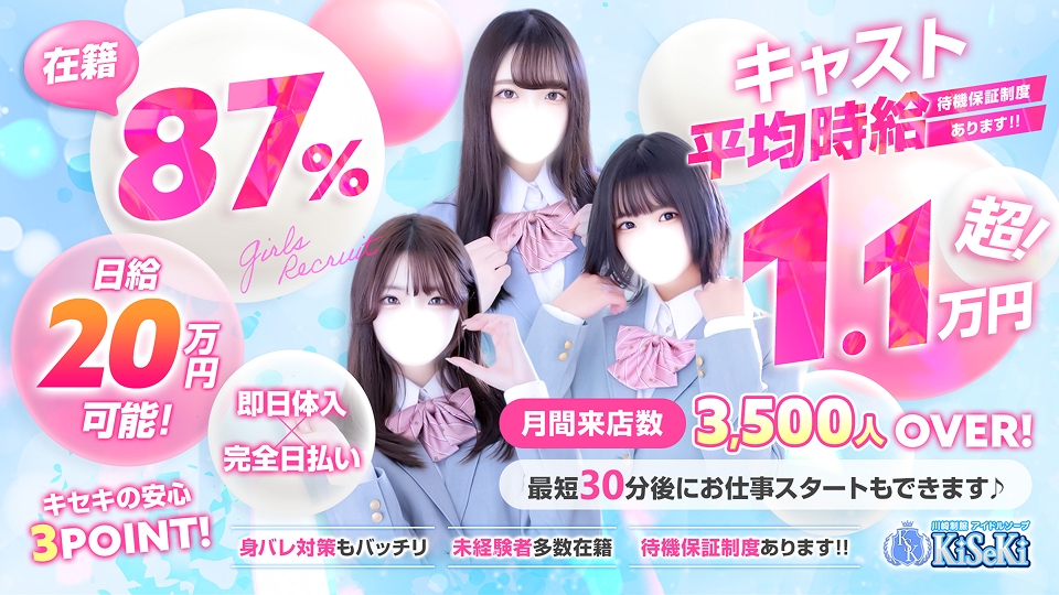 『川崎制服アイドルソープ KiSeKi』は女性が安心して働けるように在籍保証をご用意しております★